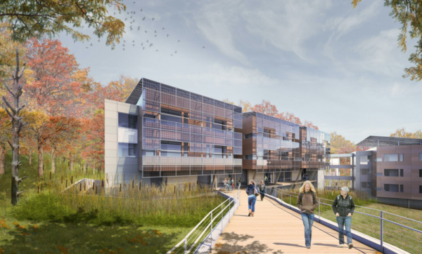 The New Lodge is a residence hall designed to Passive House standards. The project is currently "on the shelf" as other buildings in Phase IA are being constructed.